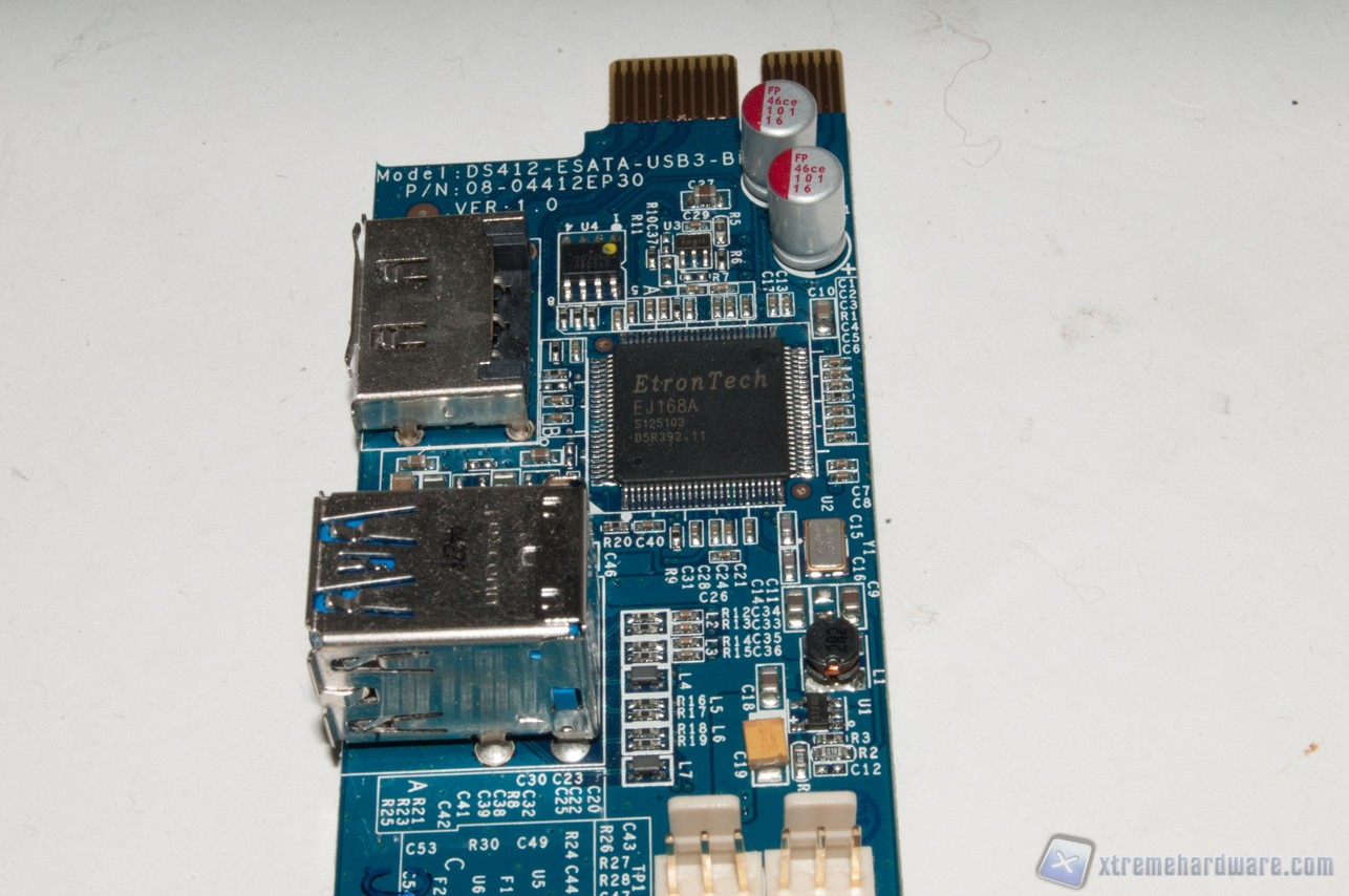 La prima scheda che troviamo è relativa all'USB 3.0 HOST di Etrontech, modello EJ168A che ospita due porte USB 3.0, una porta eSATA e i connettori FAN per le due ventole da 92mm in estrazione.