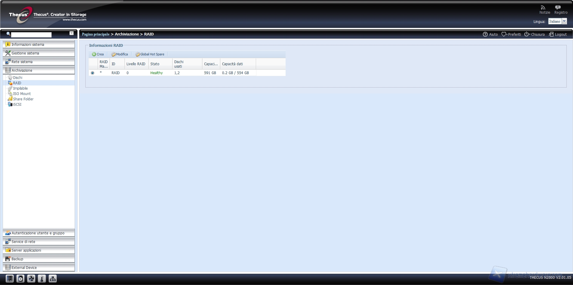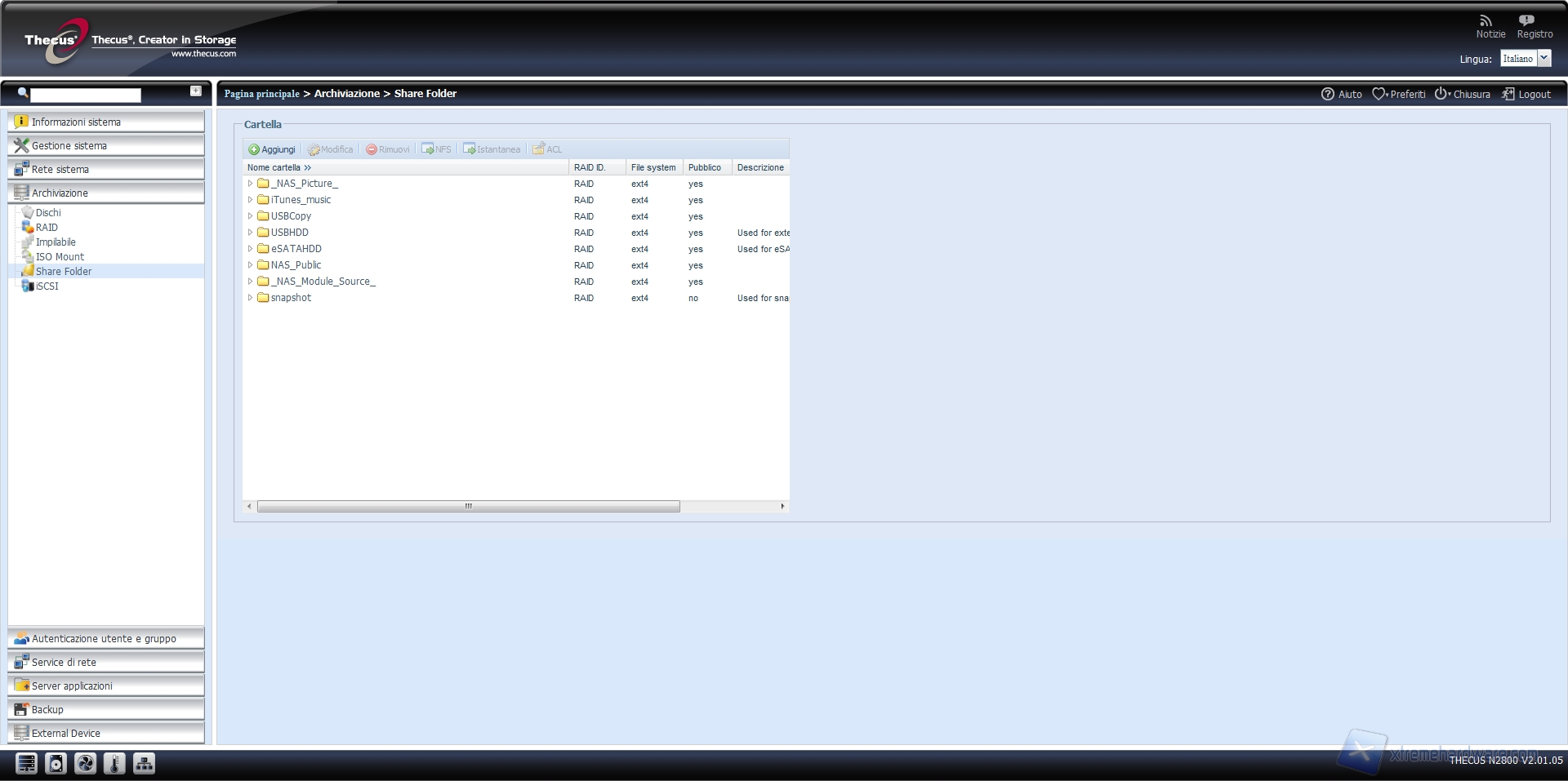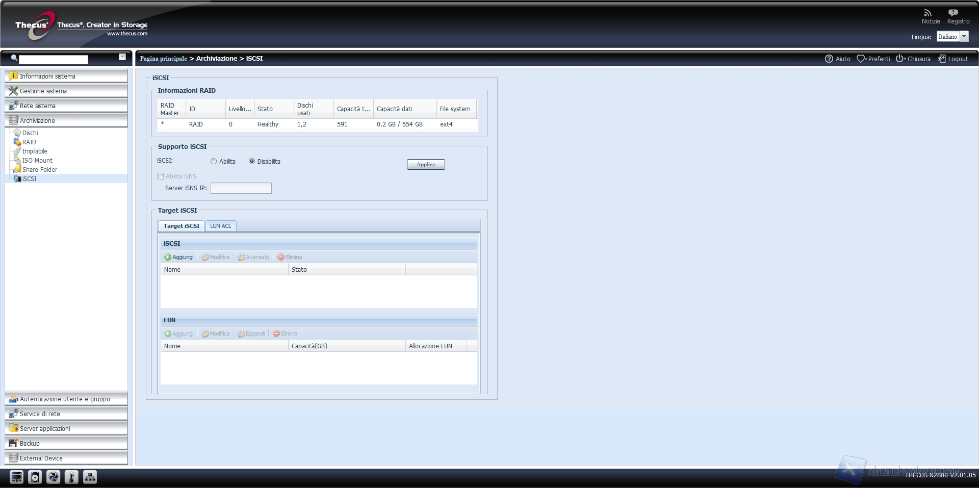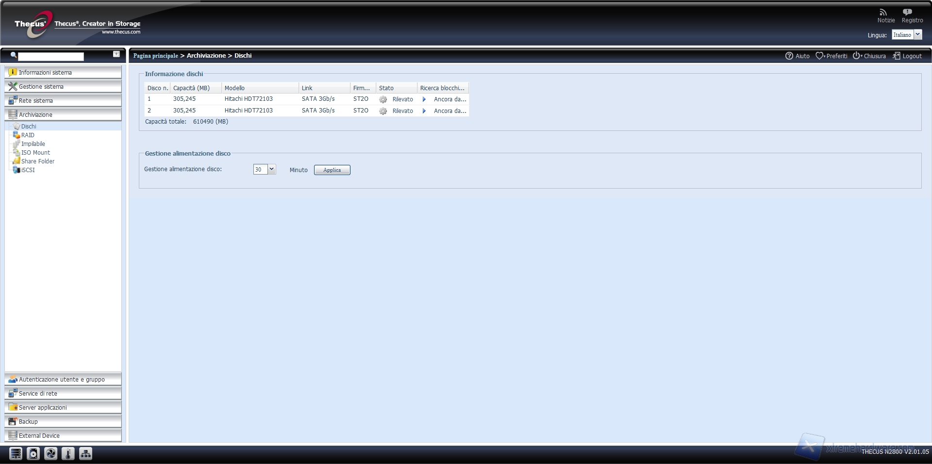 NAS Thecus N2800: what else? - Menu: rete sistema e archiviazione